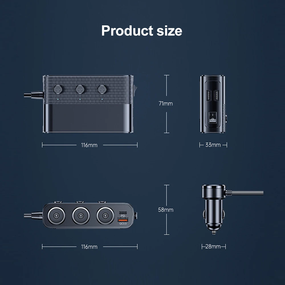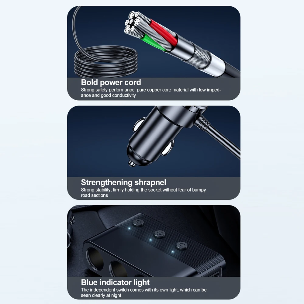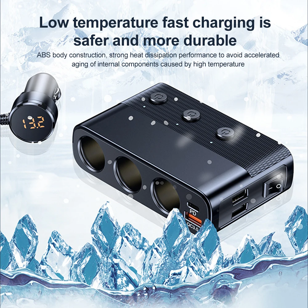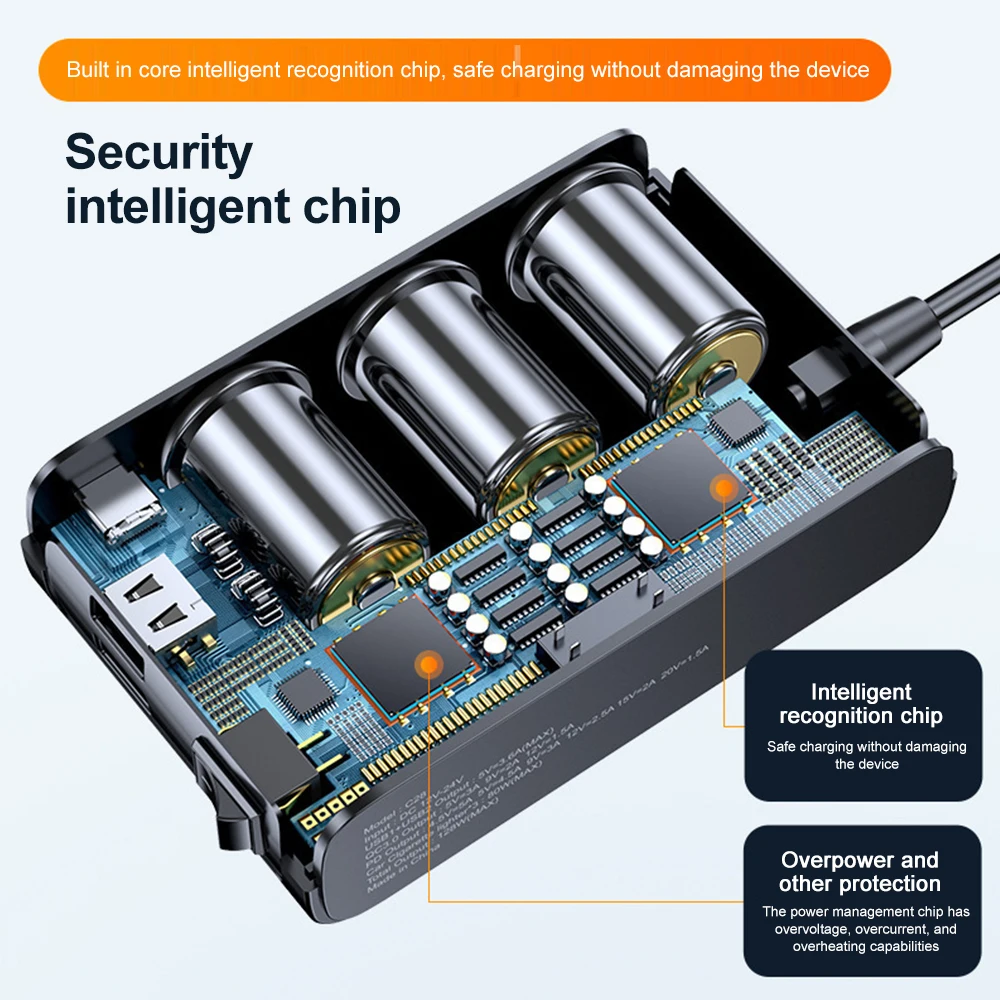 الميزات1. تصميم مفتاح مستقل2.PD+QC3.0 شحن سريع3. مراقبة الجهد4. ثلاثة ثقوب ممتدة5. العرض الرقمي الذكي