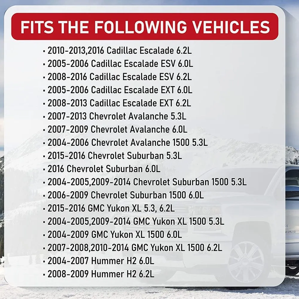 Commonly found on popular 5.3L, 6.0L, 6.2L models with year models 04, 05, 06, 07, 08, 09, 10, 11, 12, 13, 14, 15, 16.